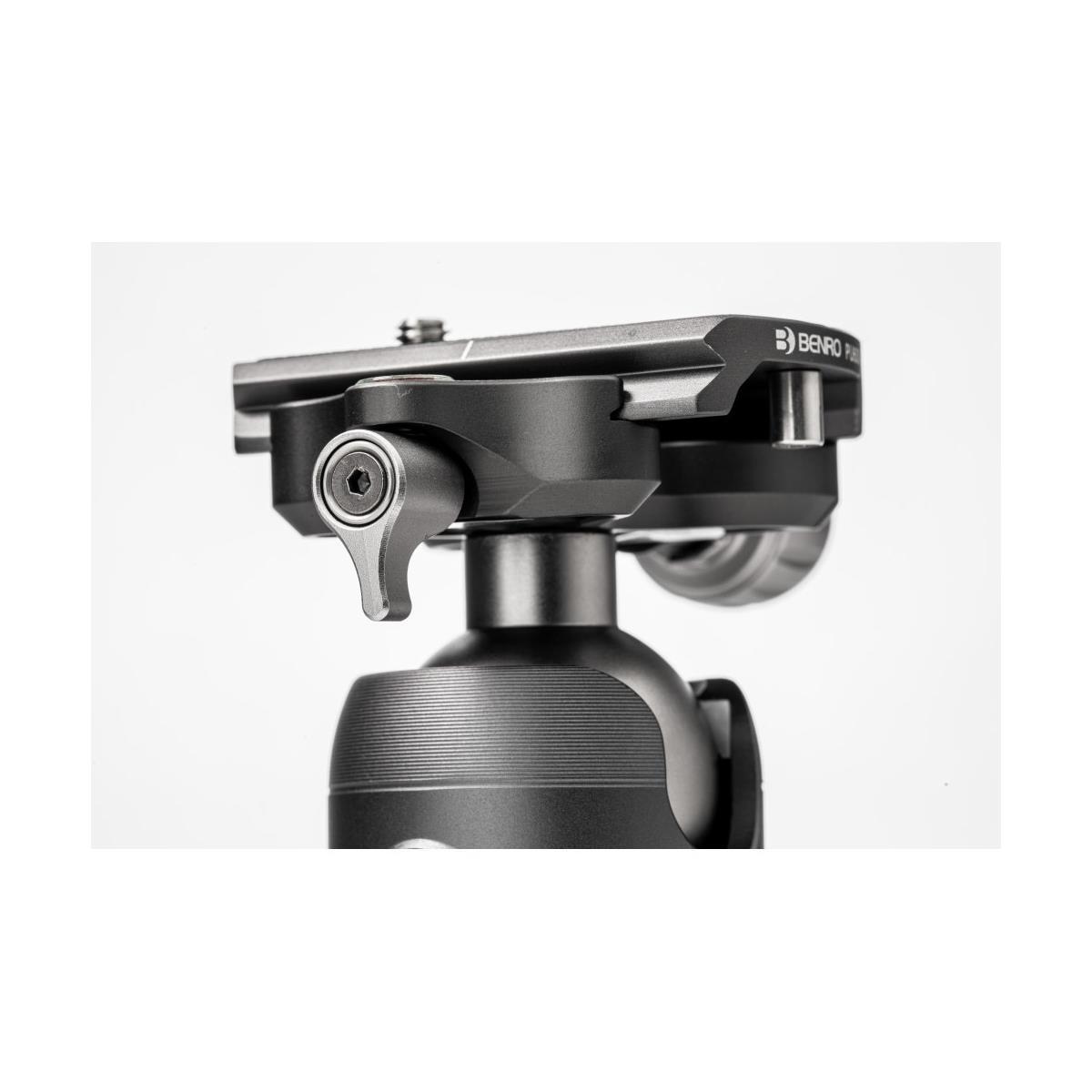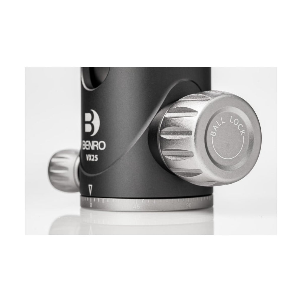 The VX Dual Panoramic Series of ballheads offers dual panoramic mode, which allows you to pan the head from its base in addition to the quick-release platform. The controls are simple, with ball friction adjustment built into the main lock knob and an independent pan lock. This newly designed ballhead features a safety lock for the quick release plate.