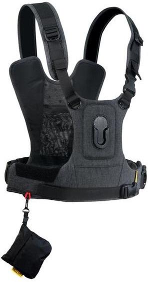 Comes complete with a comfortable and durable, one-size-fits-all adjustable Camera Harness made of Kodra Synthetic canvas with DWR coding fitted with our patented super-strong Twist & Lock camera mount. The C&C machined, anodized aluminum camera hub mounts to the base of your camera and secures the camera to the harness.