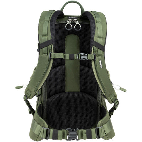 ADDITIONAL FEATURES Rear-panel access also adds security when traveling since your camera gear is protected behind your back. Meets most international and US carry-on requirements* Daisy chain, ice axe loops and additional lash points for expanding your carry capacity Includes tripod/monopod mounting system on front or side Comfortable padded waist belt for all day comfort on the trail with webbing rail for modular pouches or accessories Flap-keeper neck strap allows you to work out of the bag, unencumbered Two large water bottle pockets with cinch cord fit a 32oz Nalgene Side compression straps with locking SR buckles for additional lash points Air channel and lumbar support on rear-panel for all-day comfort Ergonomic zipper pulls are easily gripped with gloves or frozen fingers Highest quality YKK zippers, 420D Velocity and 420D high-density nylon for long lasting durability and strength Front stuff pockets for trail essentials: headlamp, gloves, chargers Adjustable dividers for large telephoto lenses, traditional photo gear, or personal items Top zippered pocket for quick access essentials Interior mesh pockets for storing filters, batteries, cables, etc. Seam-sealed rain cover included Compatible with the Tripod Suspension Kit, Filter Nest, Filter Hive and Switch Case *Check with your airline for current carry-on requirements