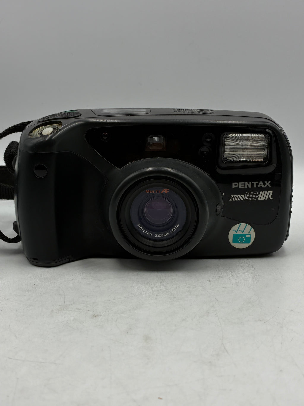 This Pentax Zoom 90 WR Film Camera - AS-IS (READ) (0080) is in AS IS condition and includes Strap. Item pictured is the actual item for sale.