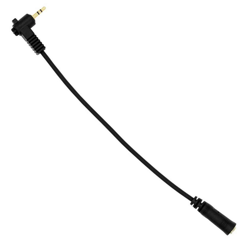 The audio cable is useful for adapting microphones having a 3.5mm male 3-pole cord to cameras using a smaller 2.5mm mic jack. It is a coiled cord approximately 1 foot in length when relaxed. The 2.5mm male portion connects to the camera while the 3.5mm femail portion connects to the microphones 3.5mm male cord.