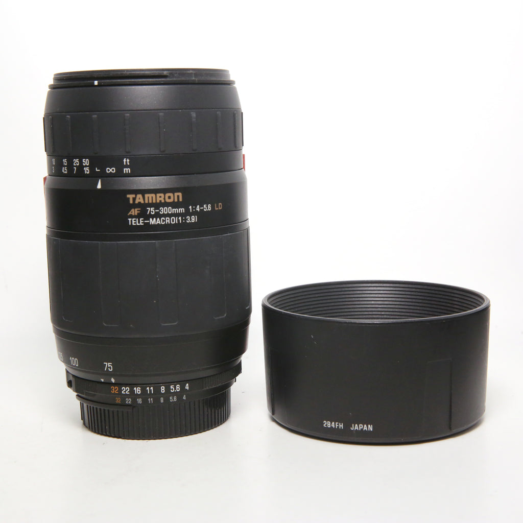 This Tamron 75-300mm f/4-5.6 LD Tele-Macro Lens for Nikon (0006) is in Excellent condition and includes Lens, Rear Cap, Hood and a 100 day warranty. The camera has a shutter count of N/A. Item pictured is the actual item for sale.