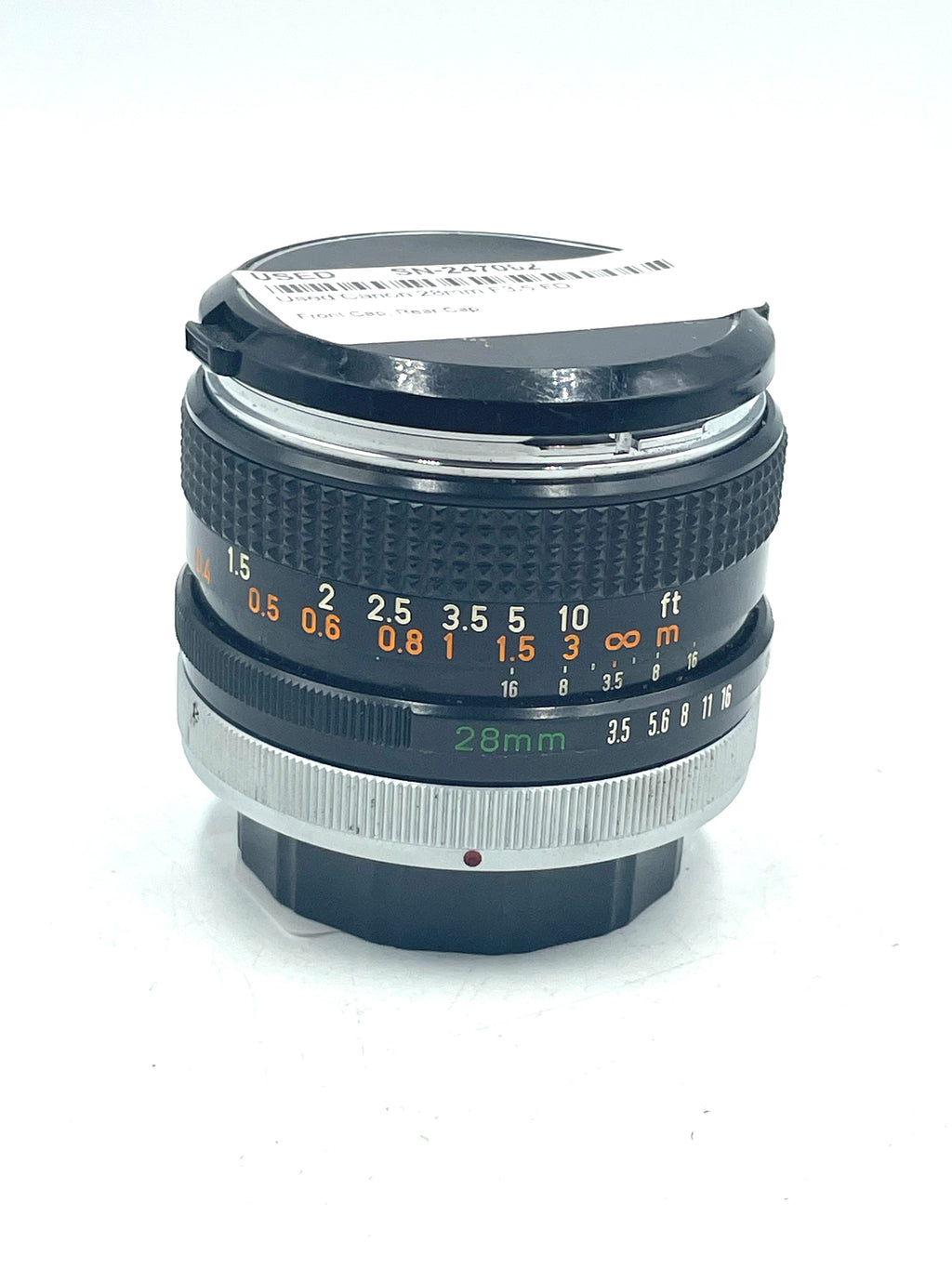 This Used Canon 28mm F3.5 FD is in Good condition and includes Front Cap, Rear Cap and a 100 day warranty. Item pictured is the actual item for sale.