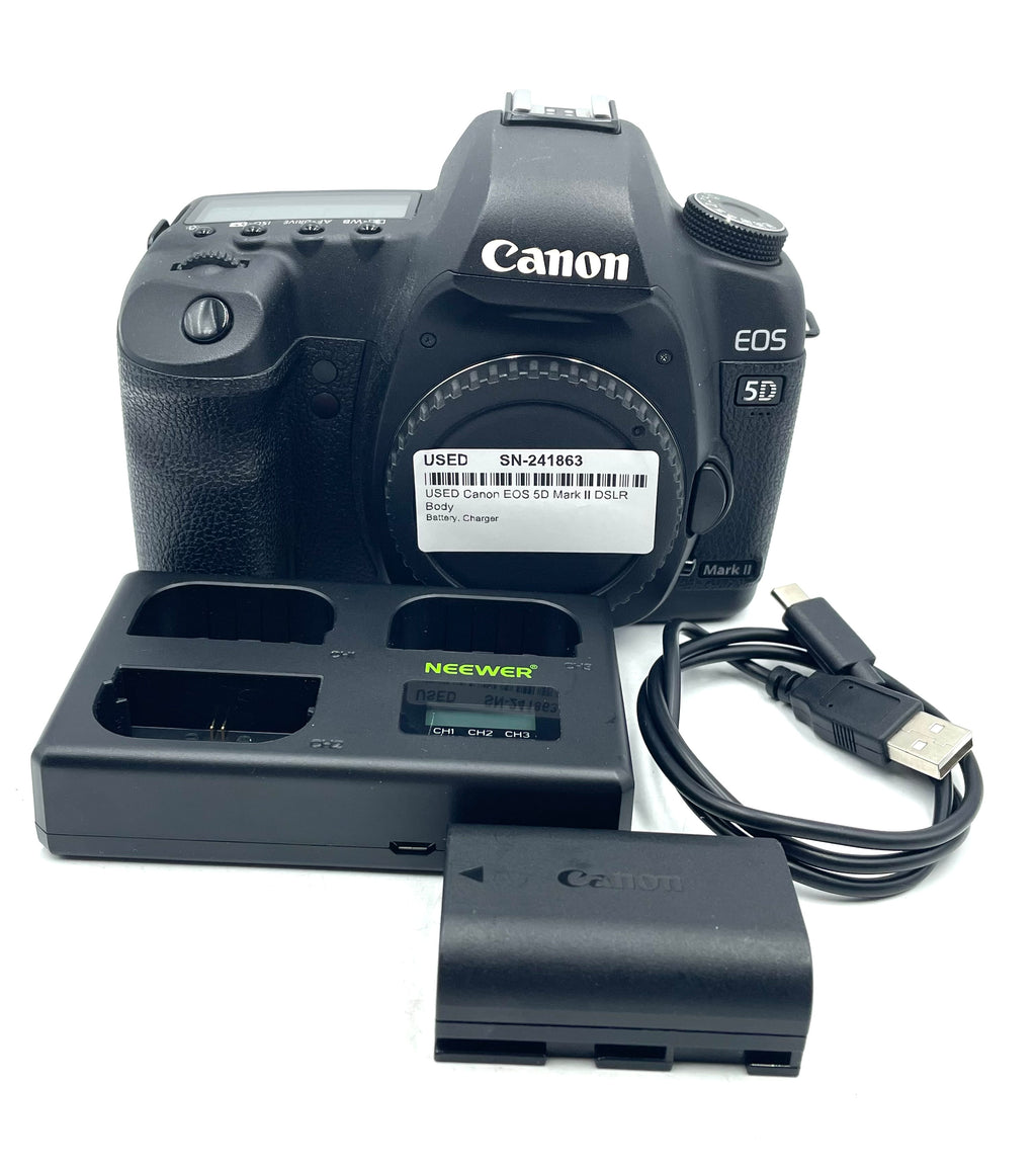 This USED Canon EOS 5D Mark II DSLR Body is in Excellent+ condition and includes Battery, Charger and a 100 day warranty. Item pictured is the actual item for sale.