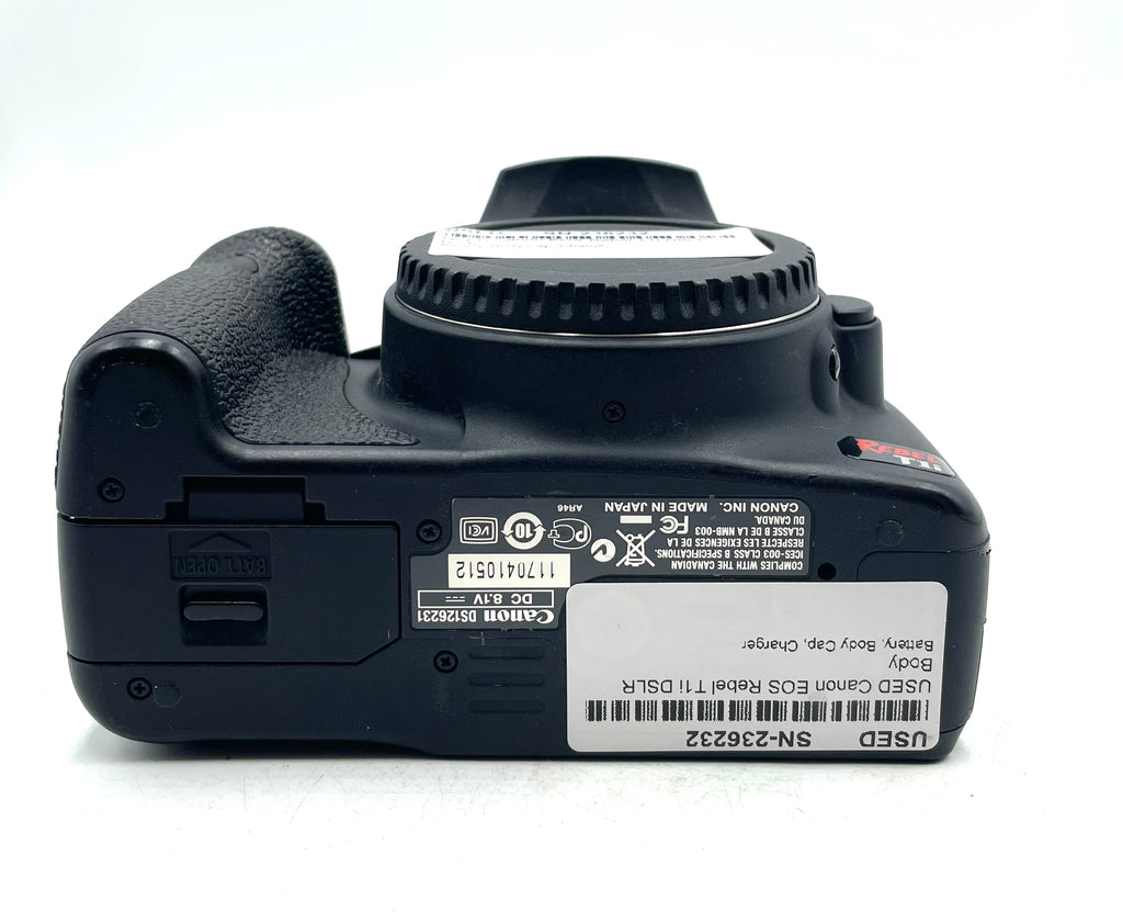 This USED Canon EOS Rebel T1i DSLR Body is in Excellent condition and includes Battery, Body Cap, Charger and a 100 day warranty. Item pictured is the actual item for sale.