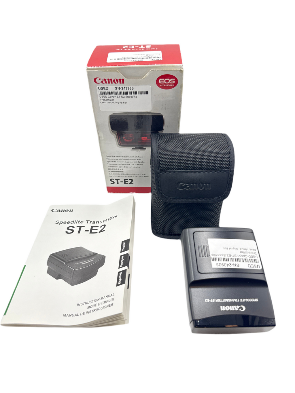 This USED Canon ST-E2 Speedlite Transmitter is in Excellent+ condition and includes Case, Manual, Original Box and a 100 day warranty. Item pictured is the actual item for sale.