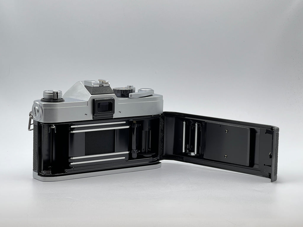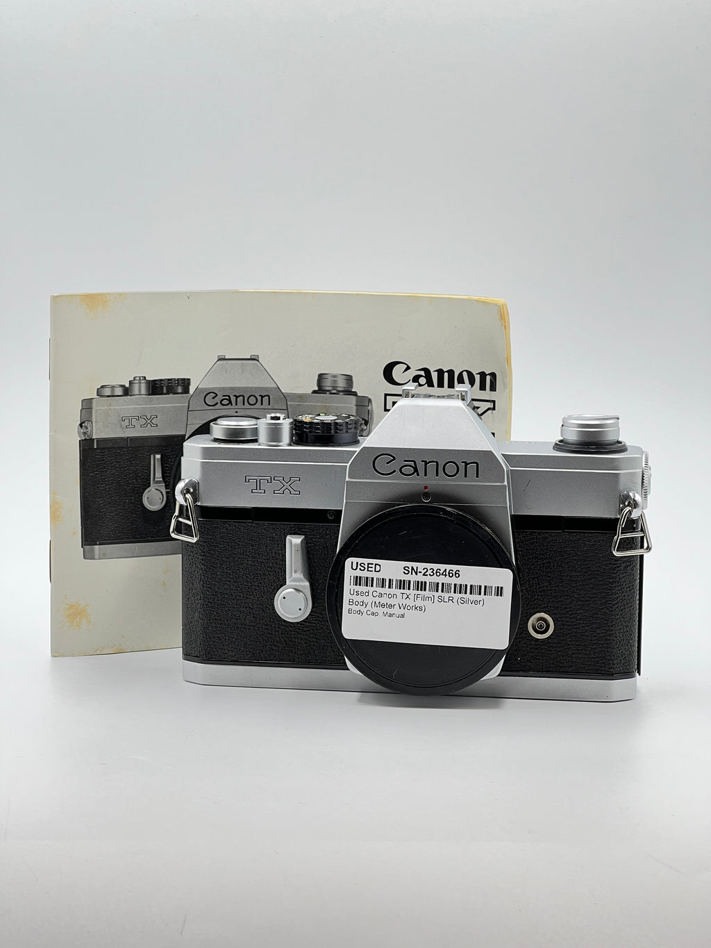 This Used Canon TX [Film] SLR (Silver) Body (Meter Works) is in Excellent condition and includes Body Cap, Manual and a 100 day warranty. Item pictured is the actual item for sale.