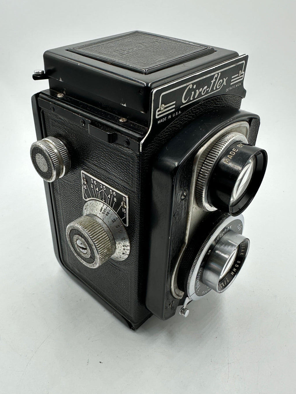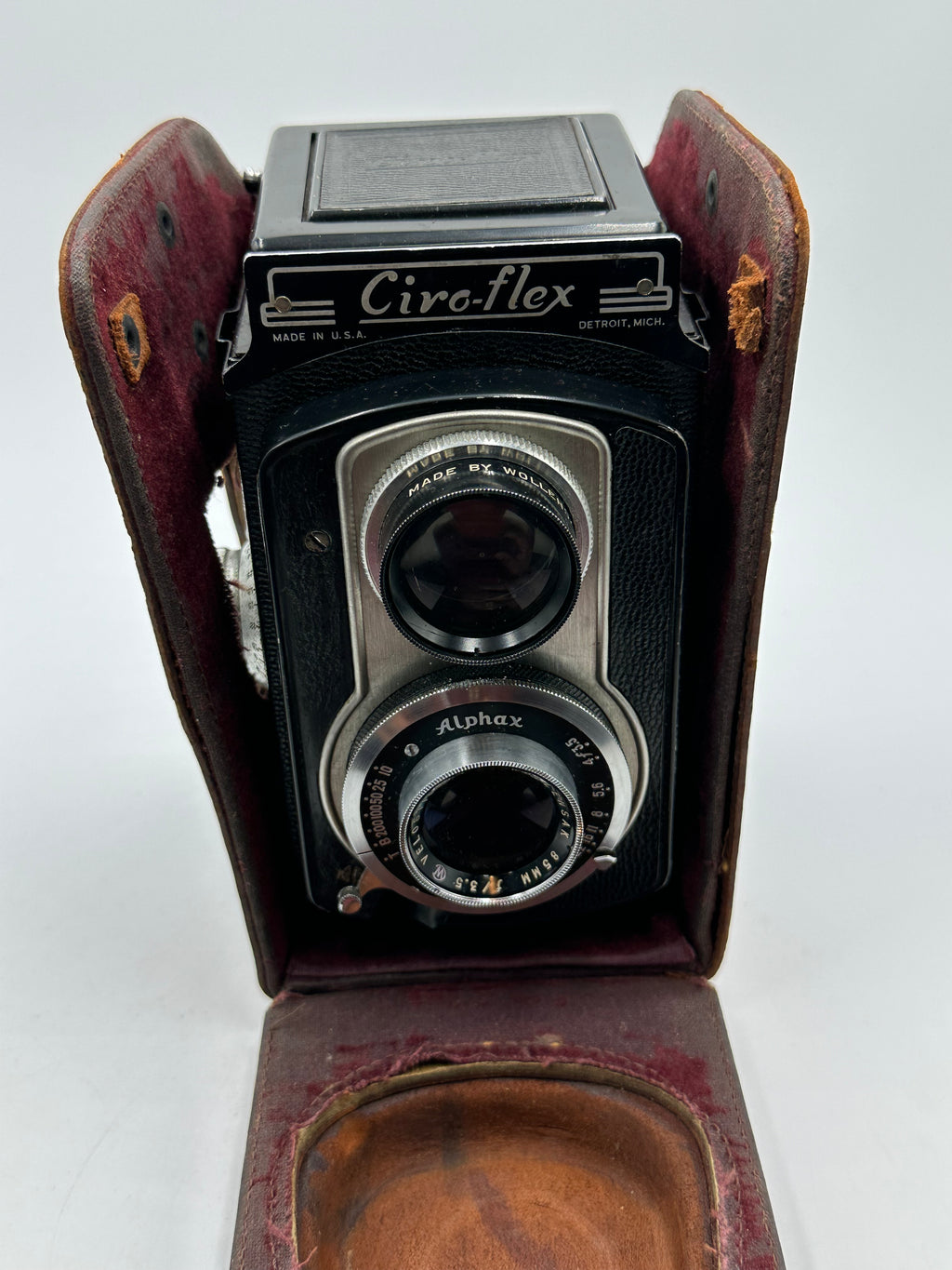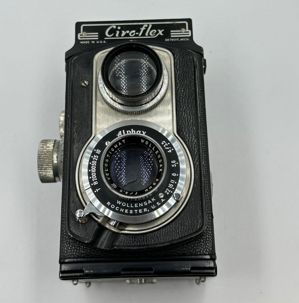 This Used Ciro-Flex 'Model D' TLR w/Wollensak Alphax 85mm f3.5 Lens is in Good condition and includes Case and a 100 day warranty. Item pictured is the actual item for sale.