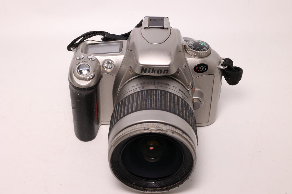 This USED Nikon N55 w/ 28-80mm f3.3-5.6 is in Excellent condition and includes Front Cap, Strap and a 100 day warranty. Item pictured is the actual item for sale.