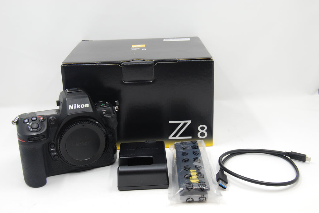 This Used Nikon Z8 MIrrorless Camera Body is in Excellent+ condition and includes Battery, Body Cap, Charger, Original Box, Strap, USB Cable and a 100 day warranty. The camera has a shutter count of 8.4K. Item pictured is the actual item for sale.