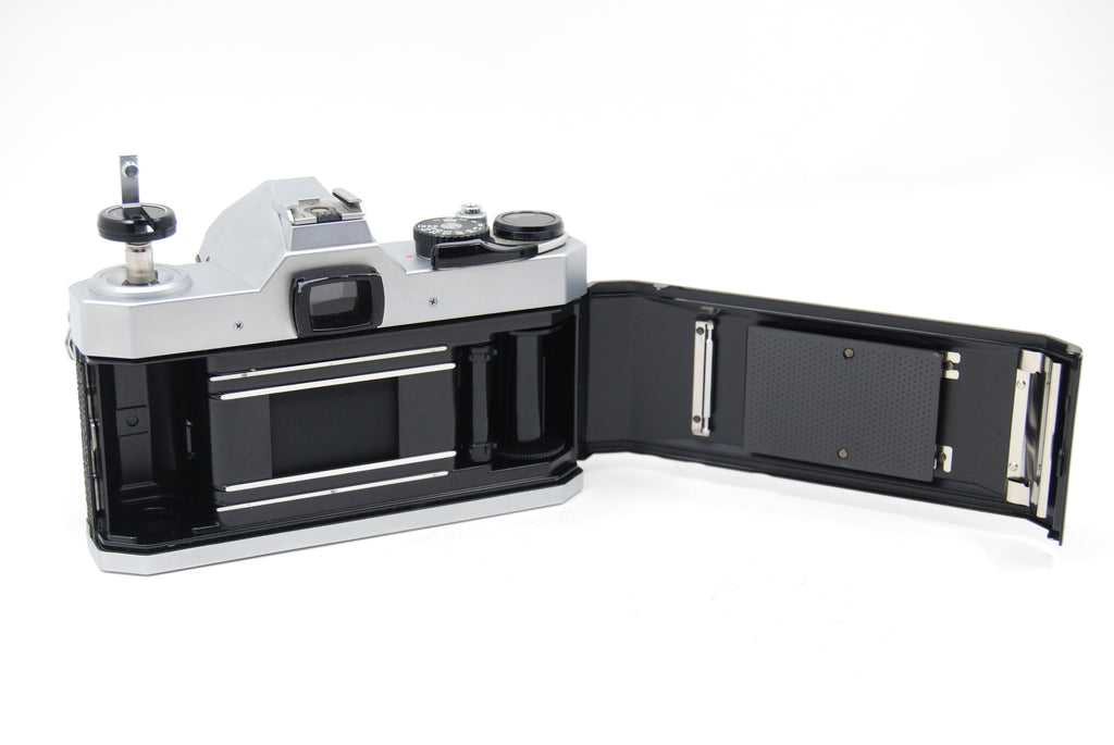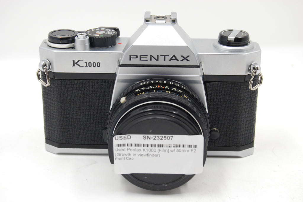 This Used Pentax K1000 [Film] SLR Body (Growth in viewfinder) is in Good condition and includes Body Cap and a 100 day warranty. Item pictured is the actual item for sale. Note: Camera is EX condition, meter works, but there is a growth in the finder (see image) that is annoying, but doesn't interfere with focusing.