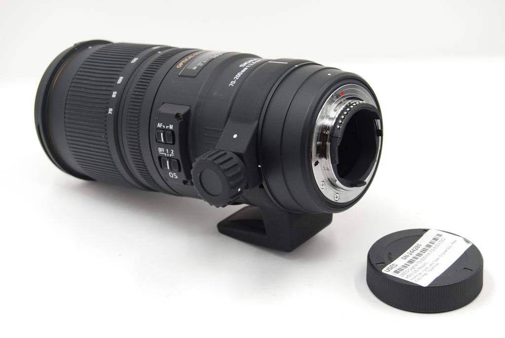 This USED Sigma 70-200mm F2.8 EX DG HSM OS (Nikon) is in Excellent+ condition and includes Front Cap, Hood, Lens Case, Original Box, Rear Cap, Strap, Tripod Foot and a 100 day warranty. Item pictured is the actual item for sale.
