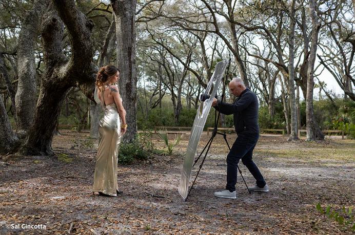 Sunlight Shoot-Through Reflector: Get a 2-light setup with just one light! Ideal for situations where your subject is backlit by the sun, providing soft light with a warm tone that illuminates your entire subject. Image